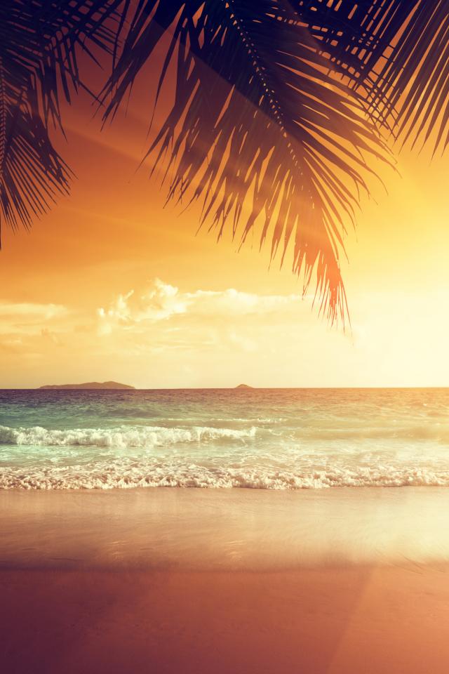 Обои Закат солнца на тропическом пляже