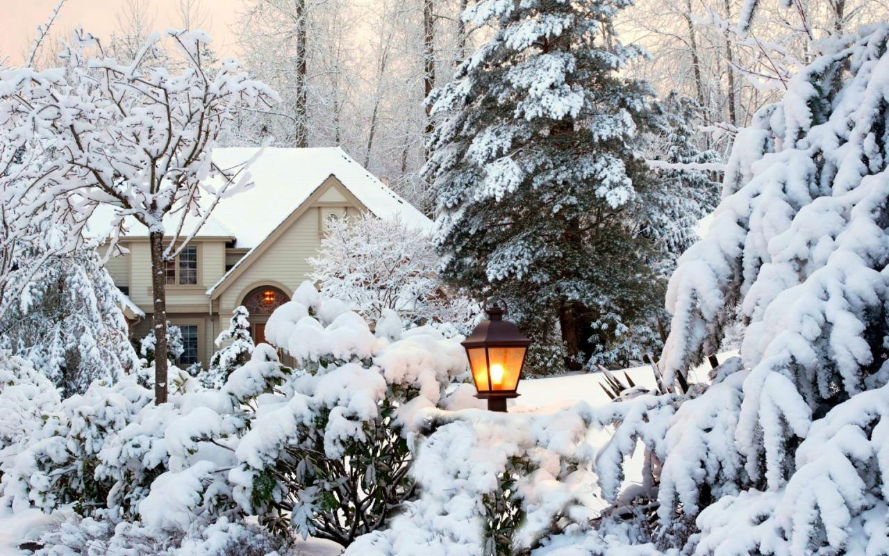 Обои Дом среди заснеженных деревьев