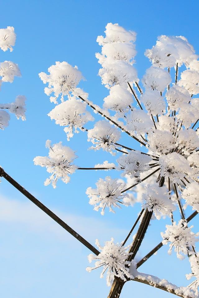 Обои Зонтики укропа покрыты инеем