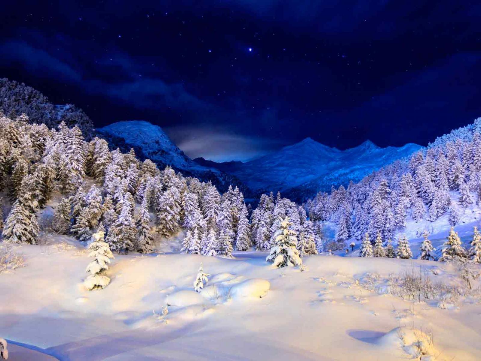 Обои Зимняя ночь в заснеженном лесу