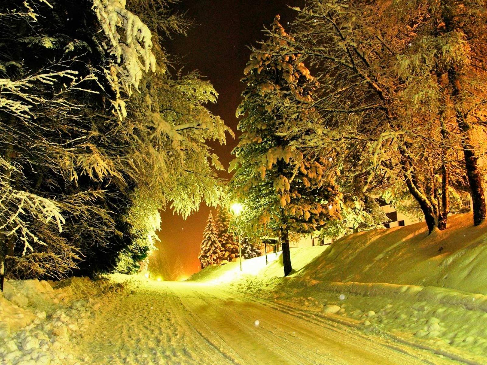 Обои Деревья у заснеженной зимней дороги
