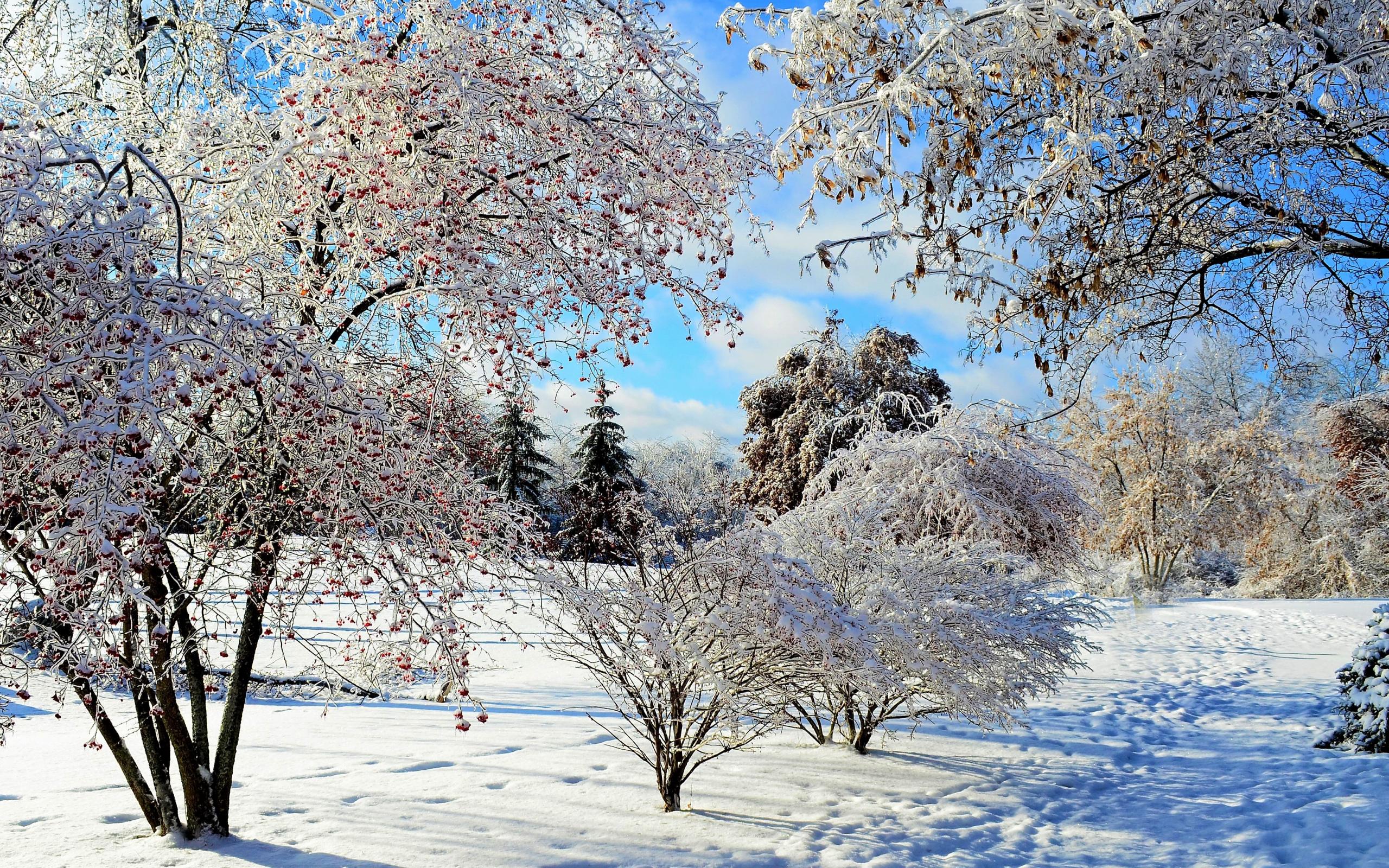 Обои Покрытые белым инеем красивые деревья в лесу зимой