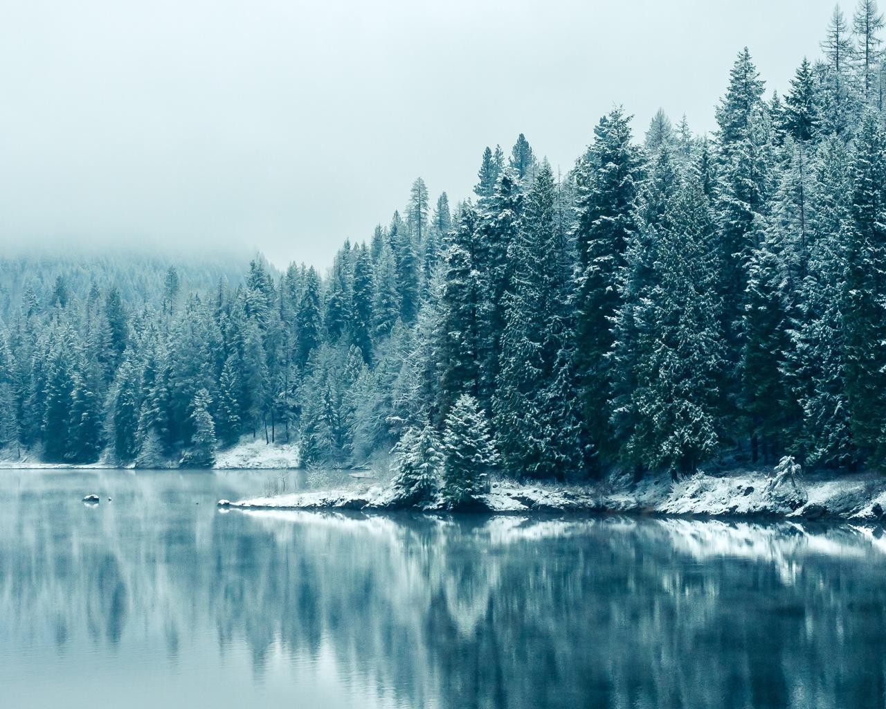 Обои Заснеженные ели реки зимой