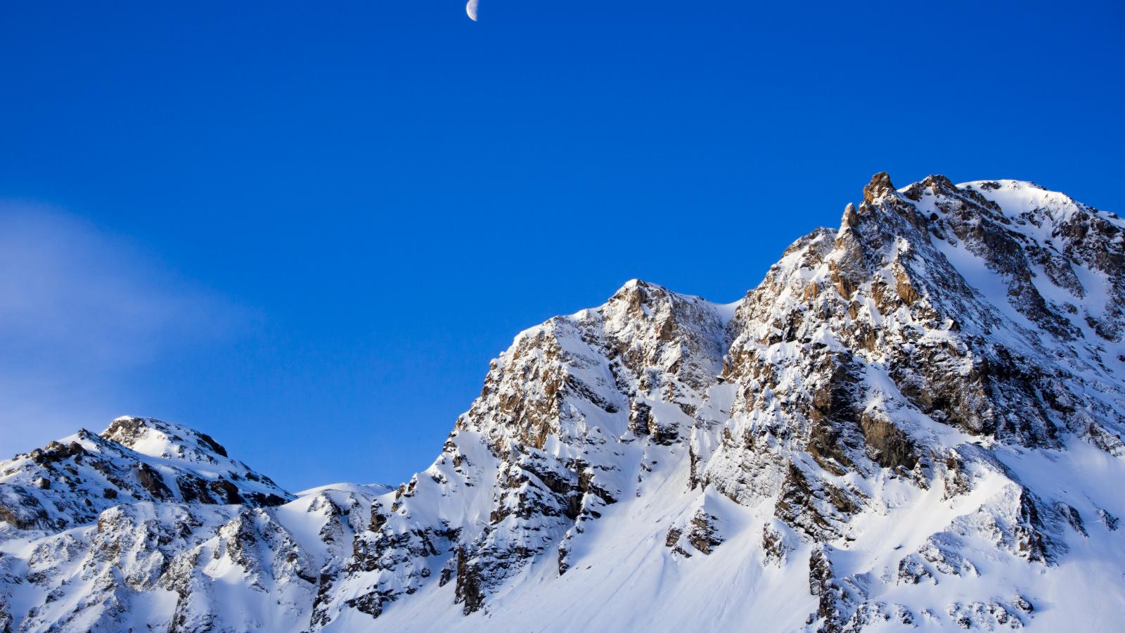 Обои Заснеженные верхушки гор на фоне голубого неба