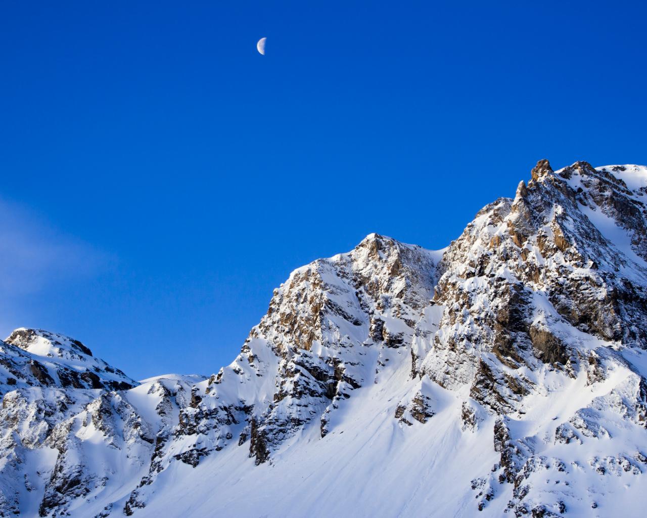Обои Заснеженные верхушки гор на фоне голубого неба