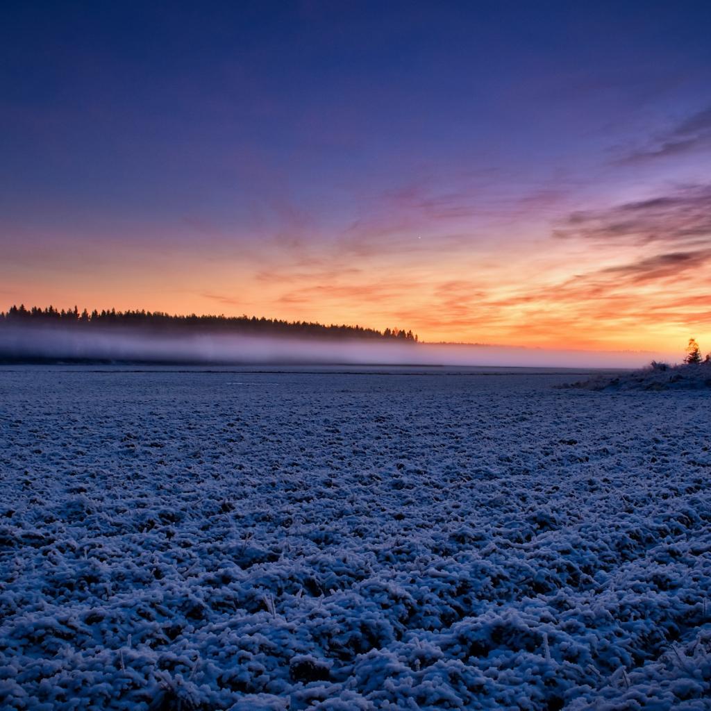 Обои Покрытое имеем поле в тумане на рассвете