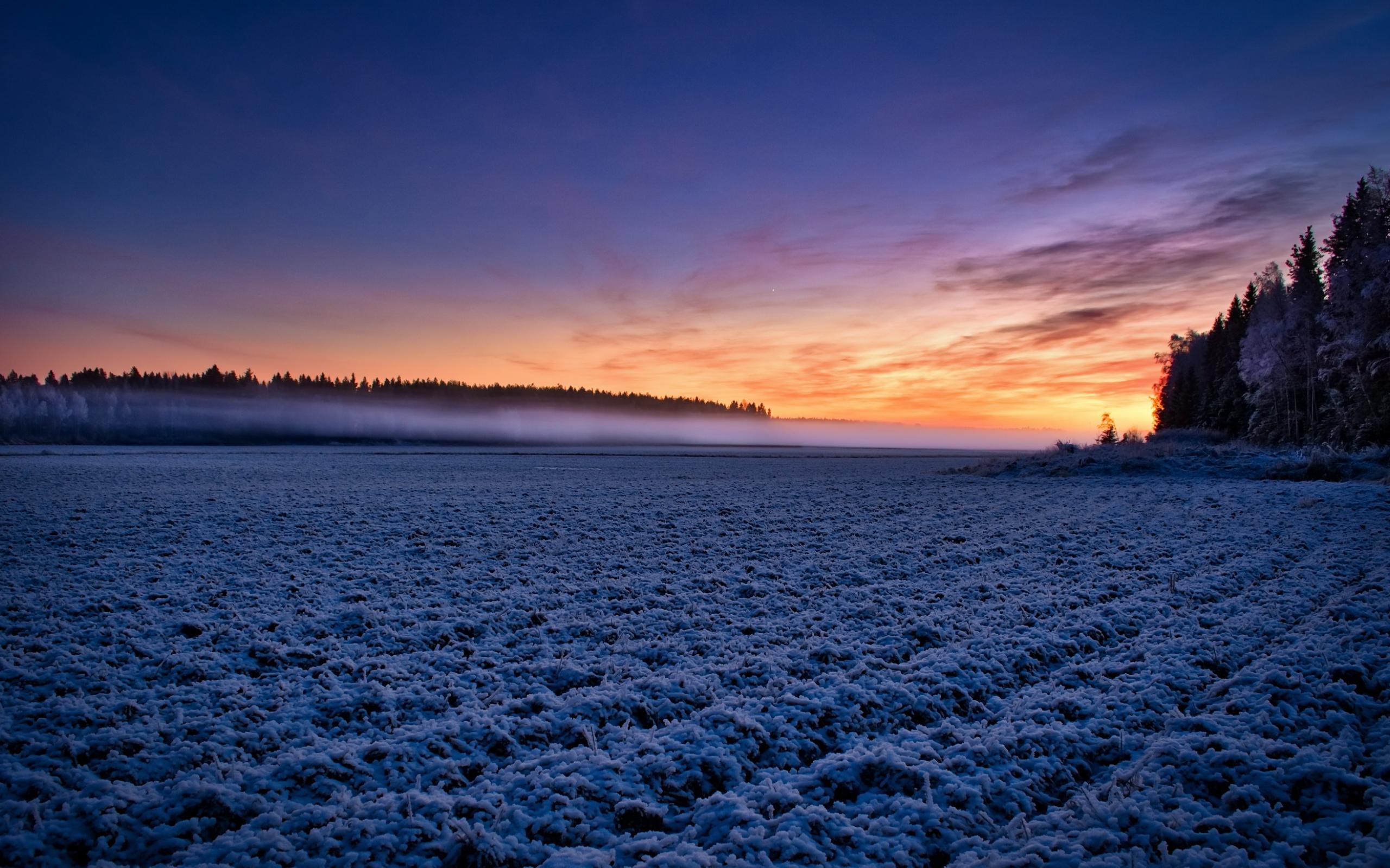 Обои Покрытое имеем поле в тумане на рассвете