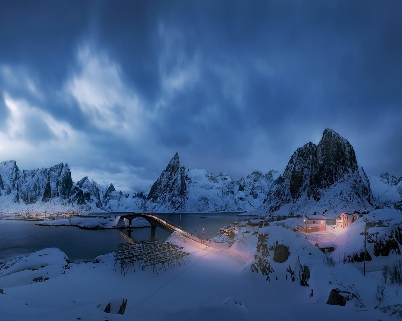 Обои Пасмурное небо над заснеженными горами зимой