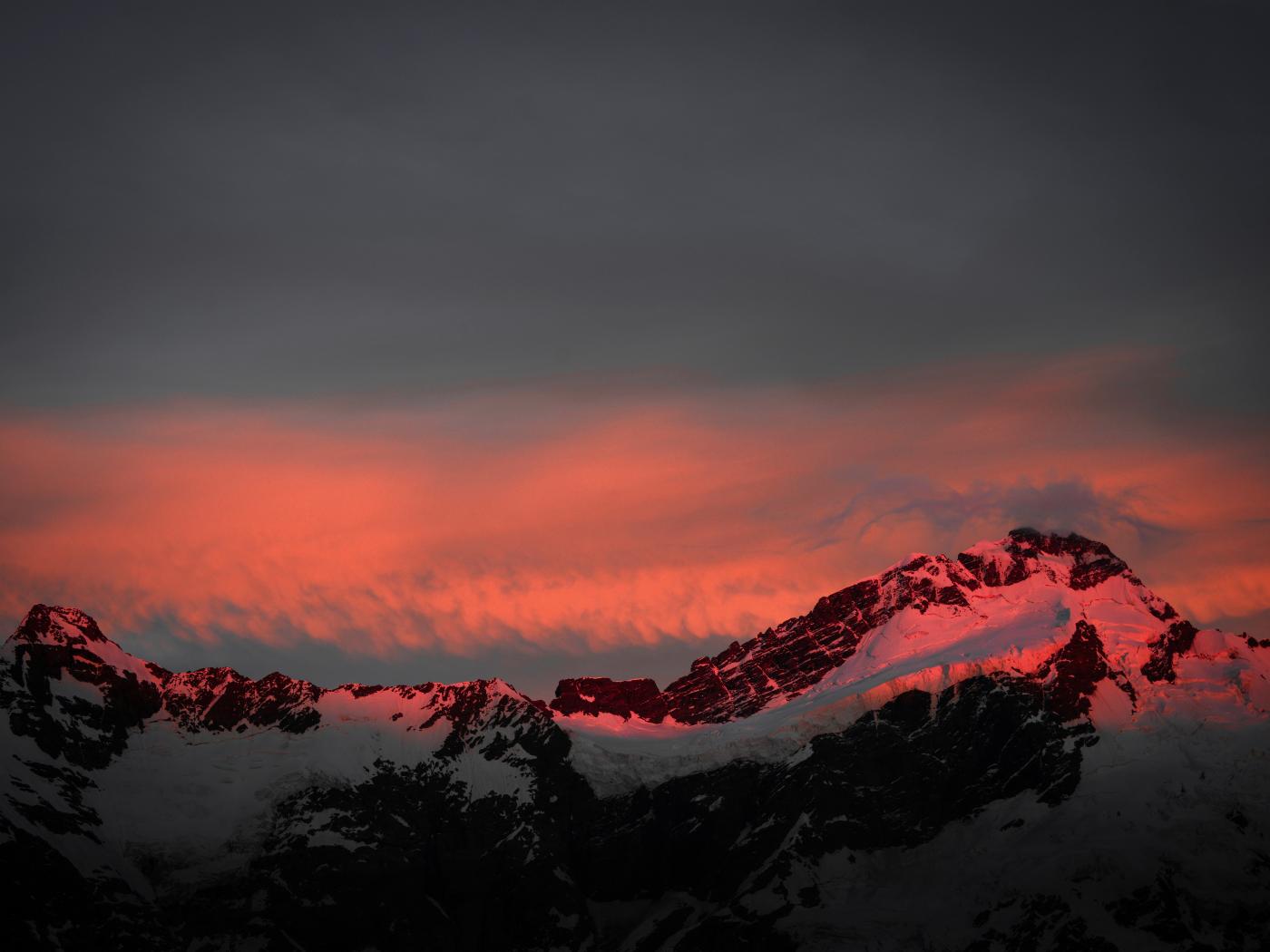 Обои Рассвет над заснеженными вершинами гор