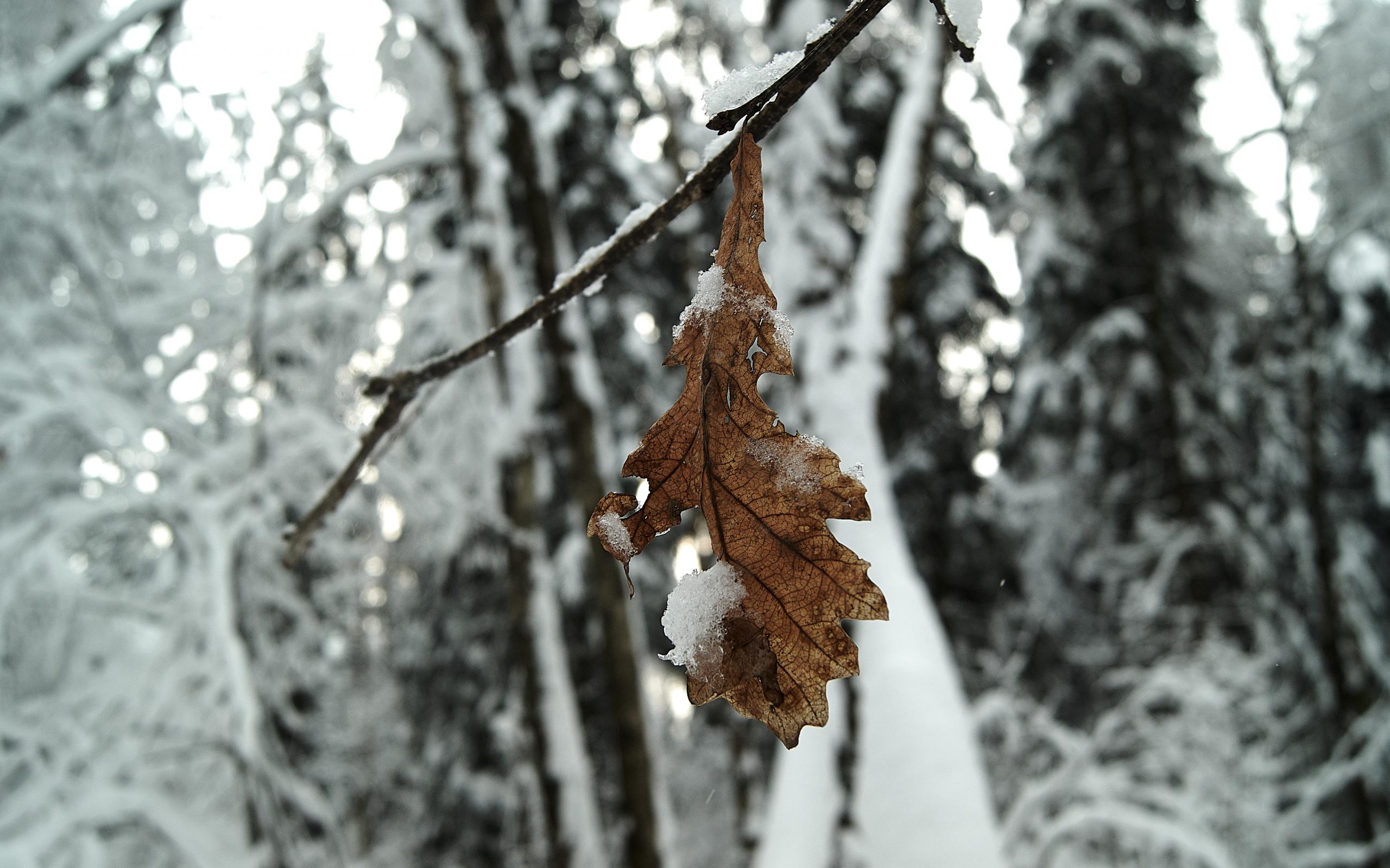 Обои Сухой лист дуба на ветке зимой