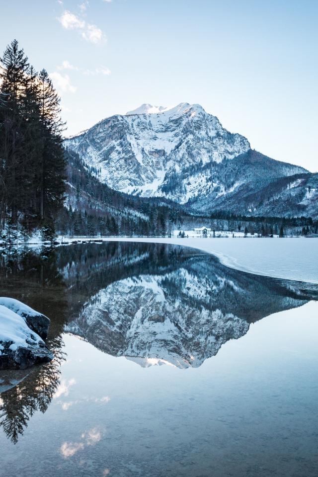 » Обои Холодная вода в озере покрывается льдом на фоне гор