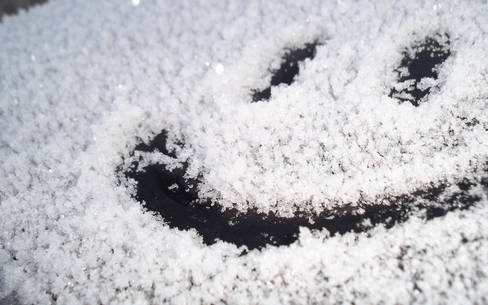 Обои Смайлик на стекле машины зимой на снегу