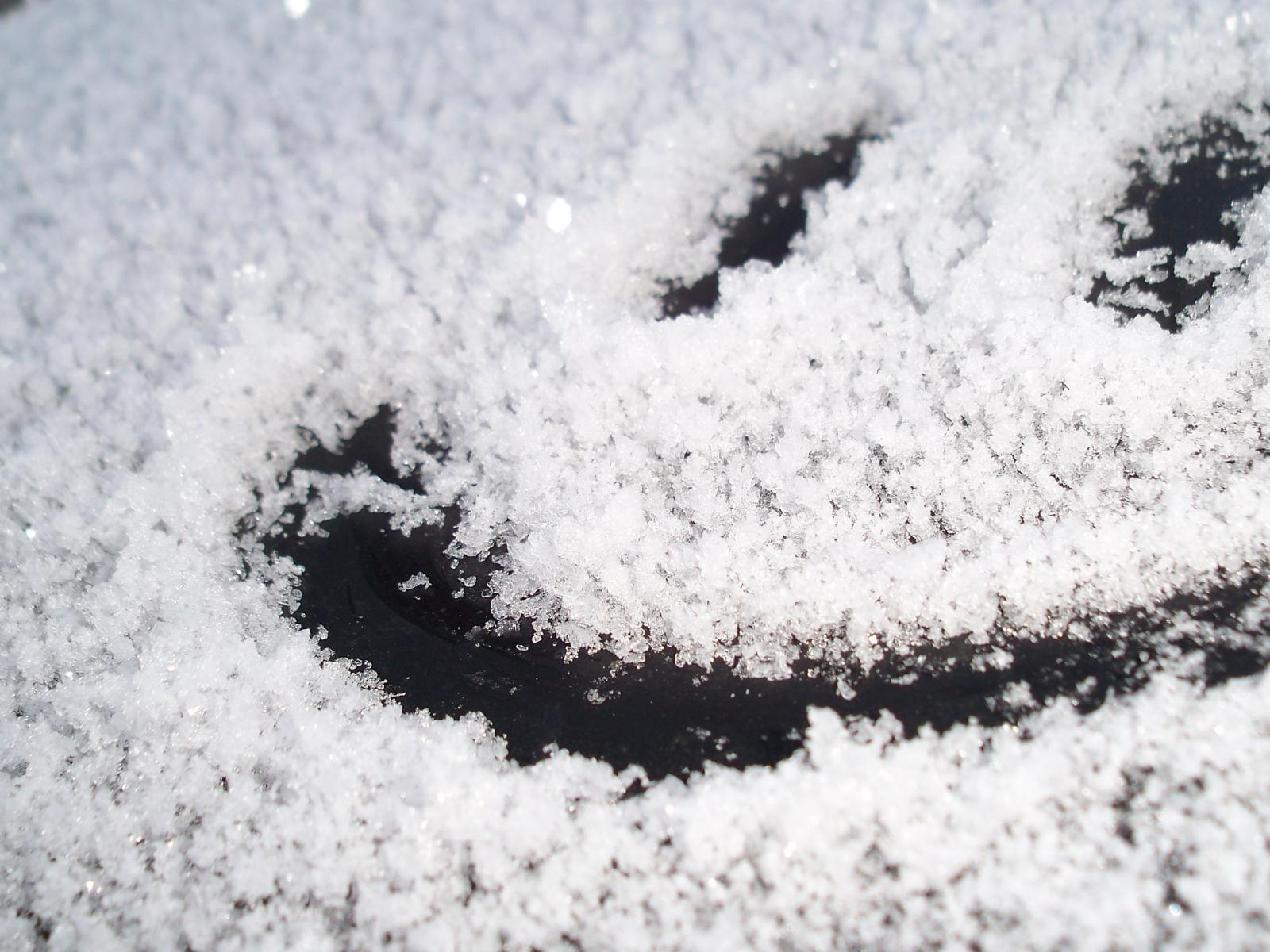 Обои Смайлик на стекле машины зимой на снегу