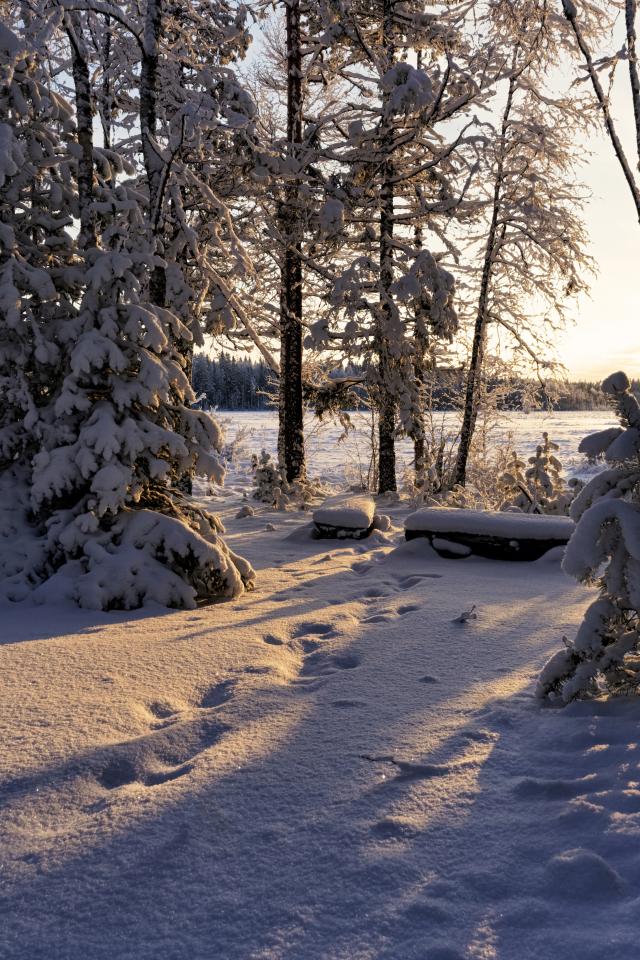 Обои Красивый заснеженный лес в лучах солнца