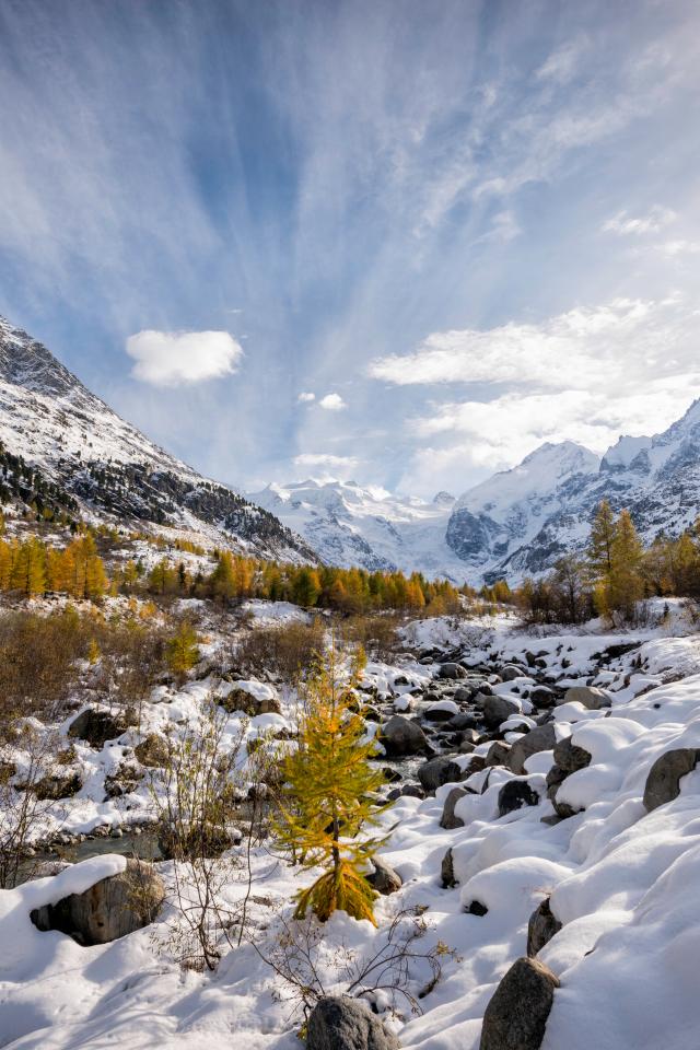 Обои Вид на заснеженные швейцарские горы в лучах солнца