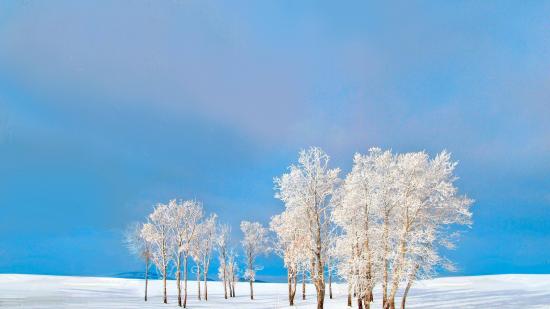 Обои Покрытые снегом деревья на фоне голубого неба зимой