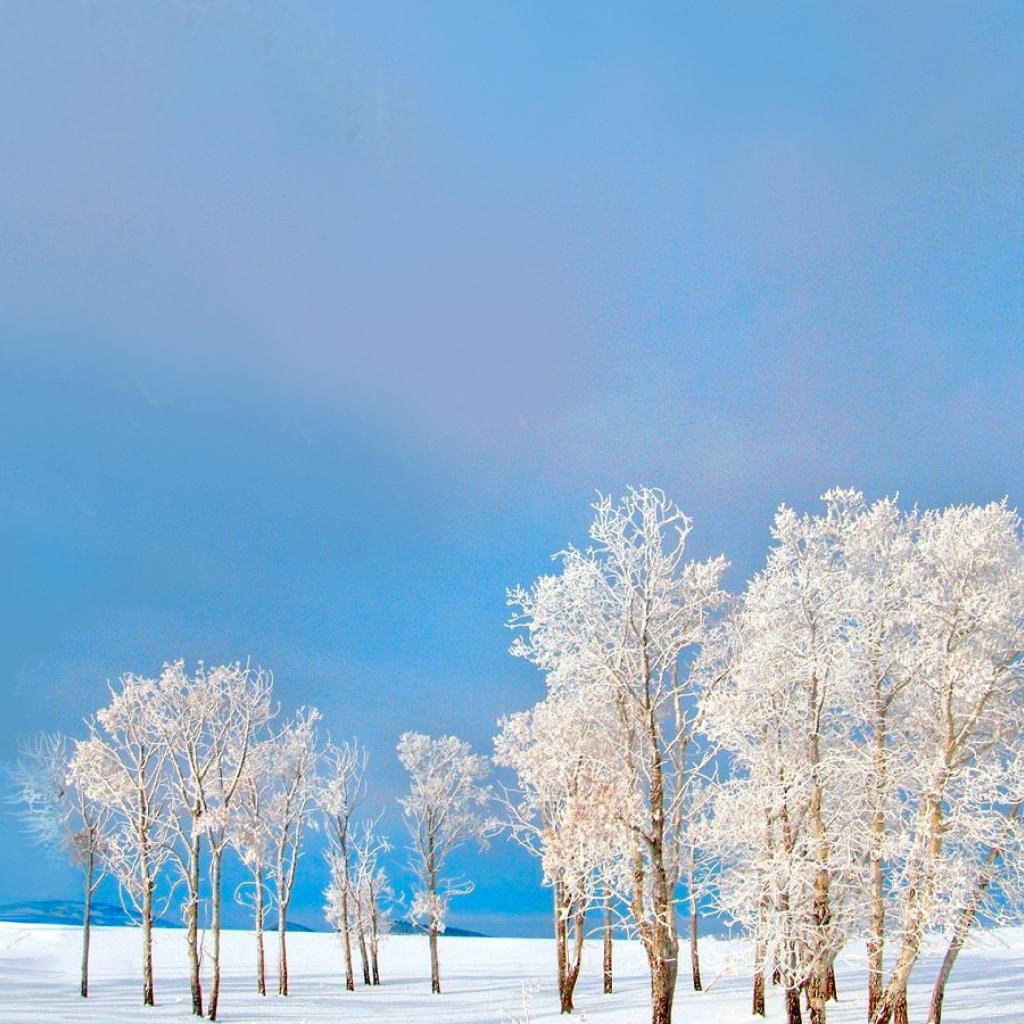 Обои Покрытые снегом деревья на фоне голубого неба зимой