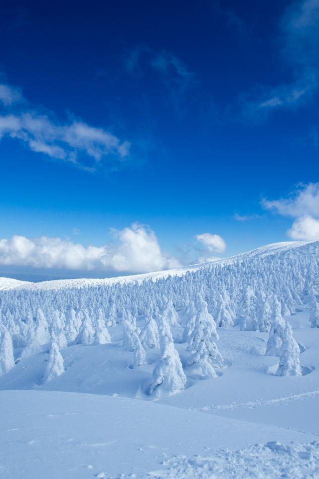 Обои Красивые покрытые снегом ели на холме под голубым небом