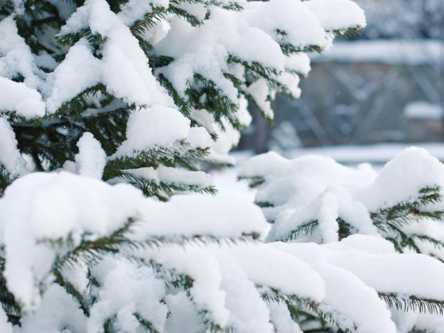 Обои Зеленая ель усыпана снегом зимой