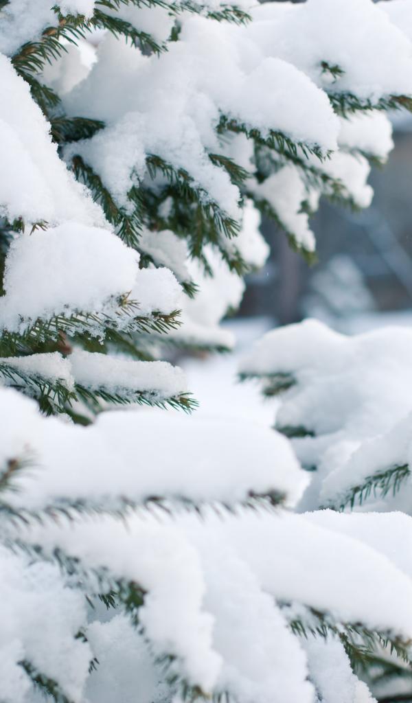 Обои Высокие покрытые снегом сосны у дороги зимой