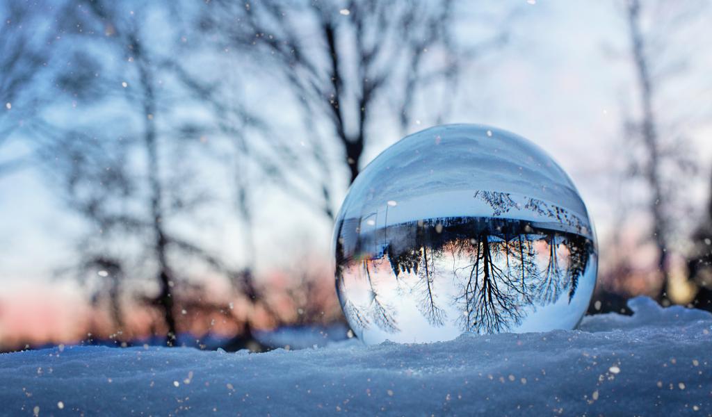 Обои Большой стеклянный шар лежит на холодном снегу