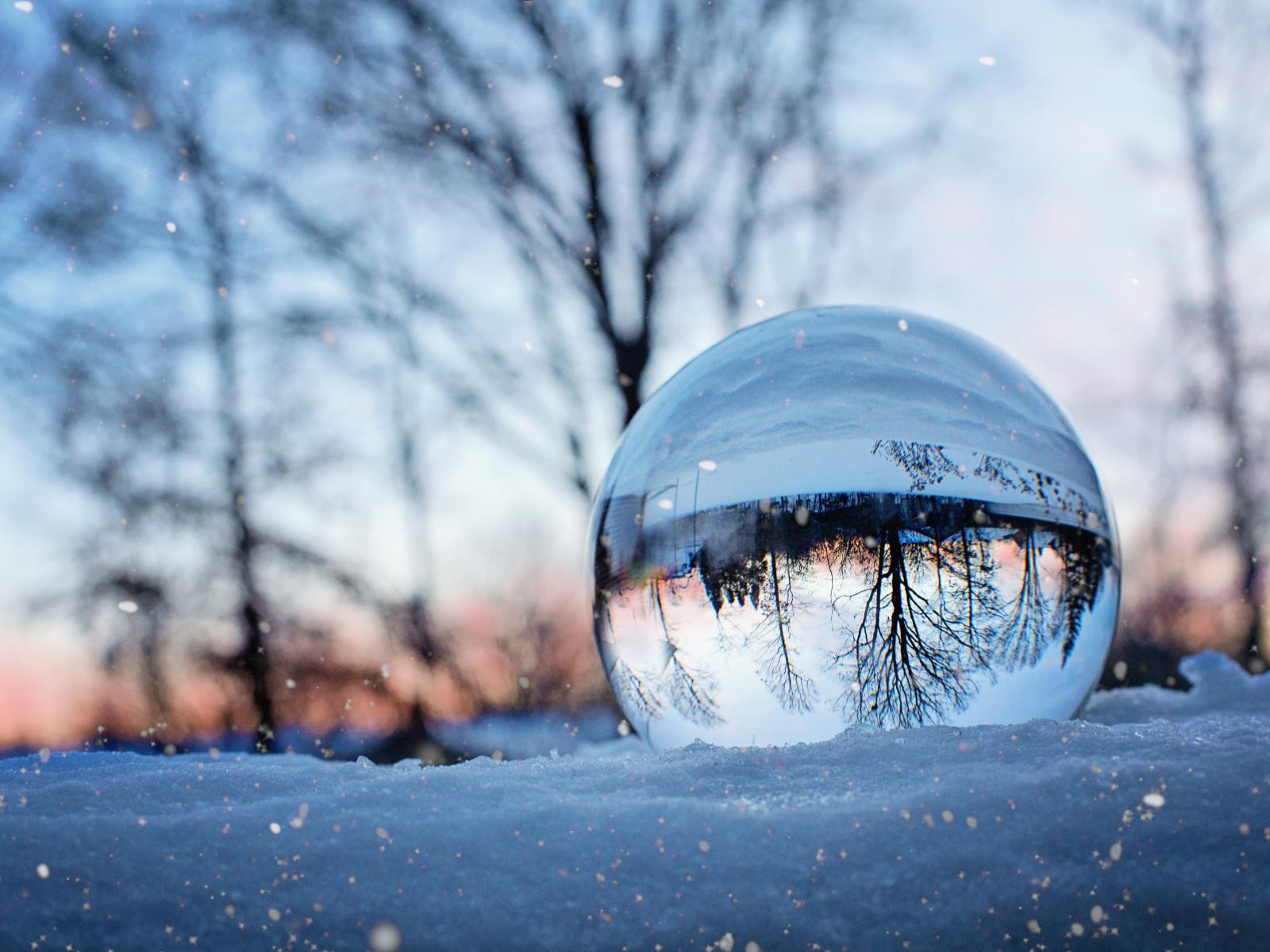 Обои Большой стеклянный шар лежит на холодном снегу
