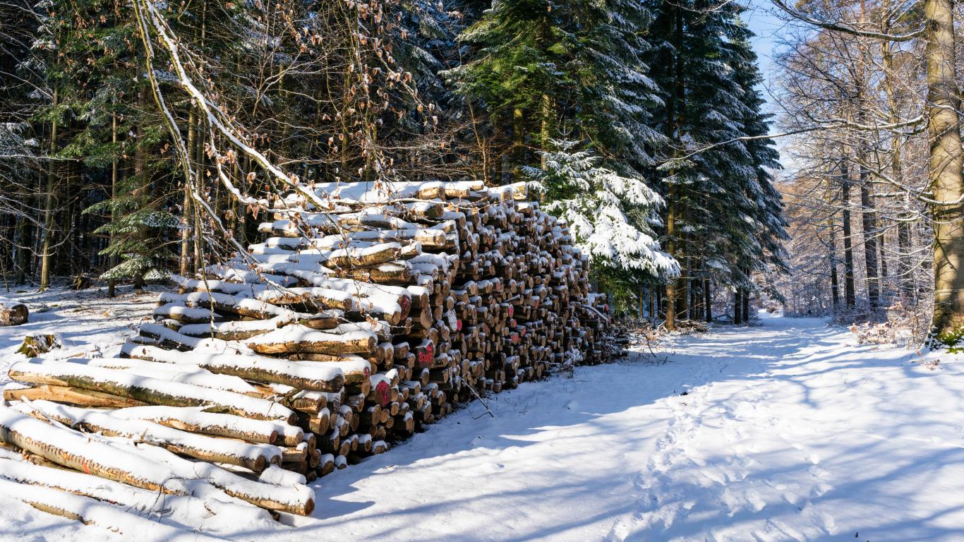 Обои Заготовленные дрова в заснеженном лесу