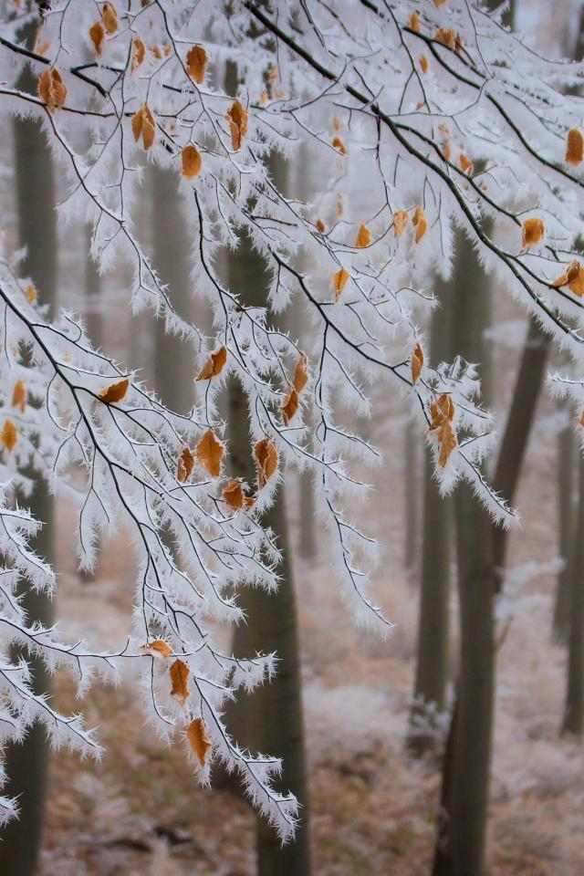» Обои Ветки дерева покрыты белым инеем