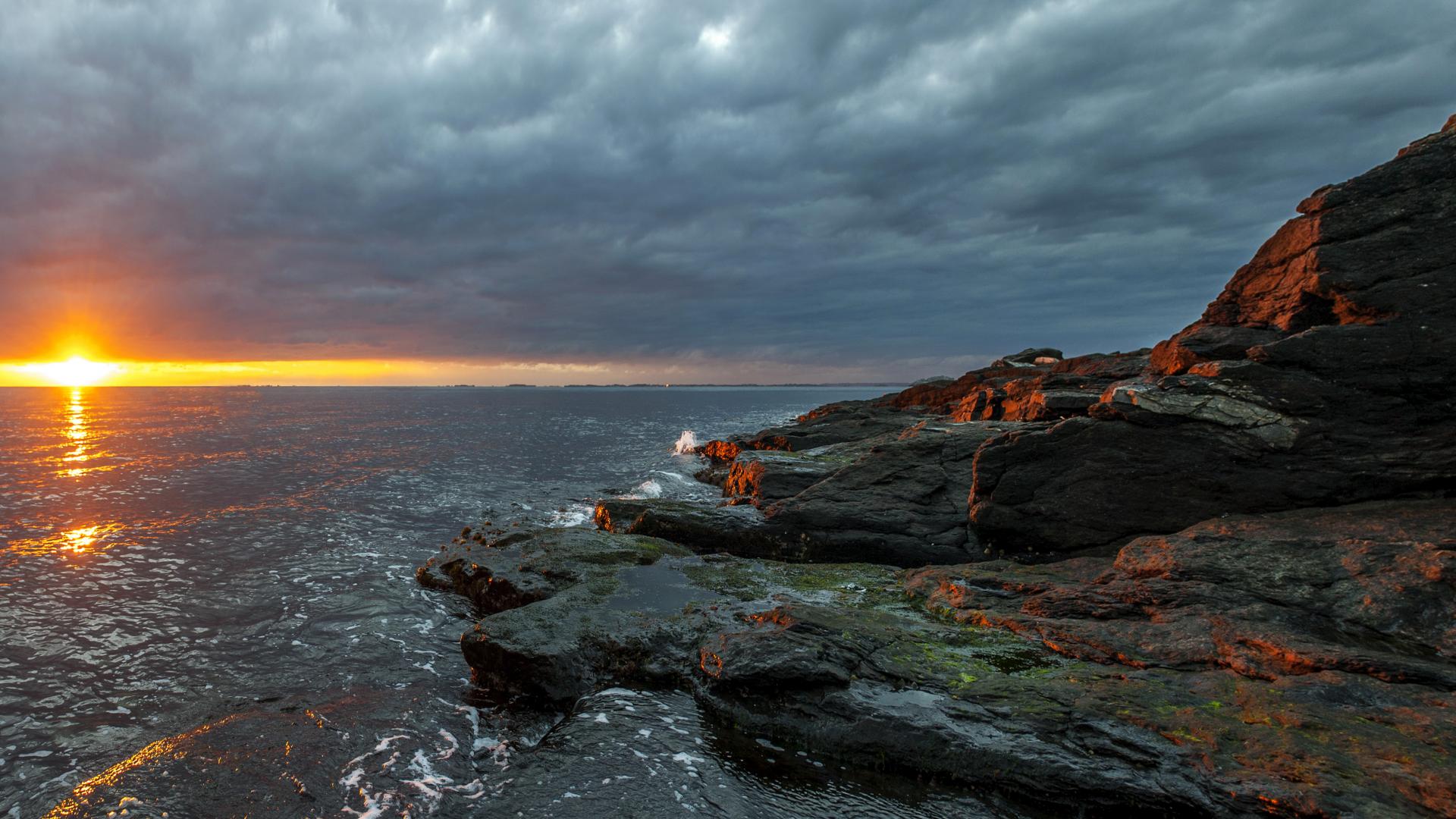 Обои Каменное побережье в Норвегии на закате
