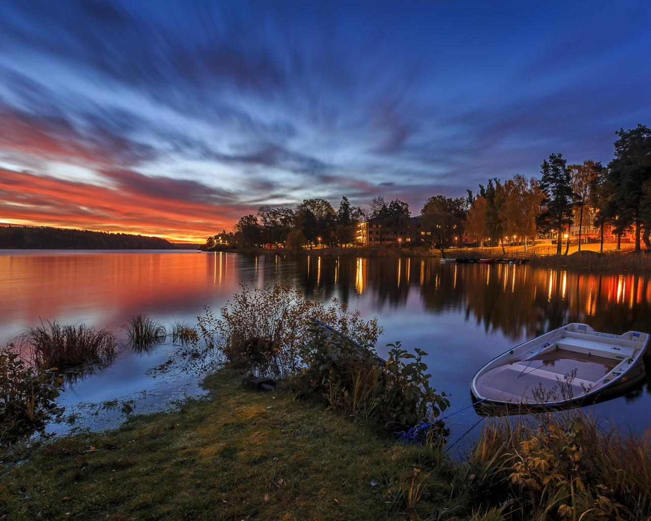 » Обои Закат солнца на реке, Швеция