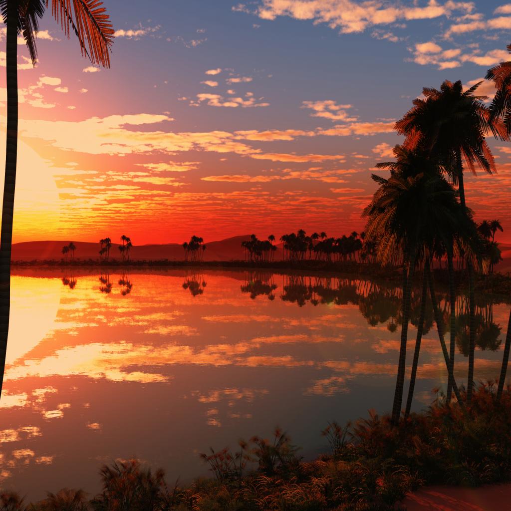 Обои Красивый закат солнца на тропическом пляже