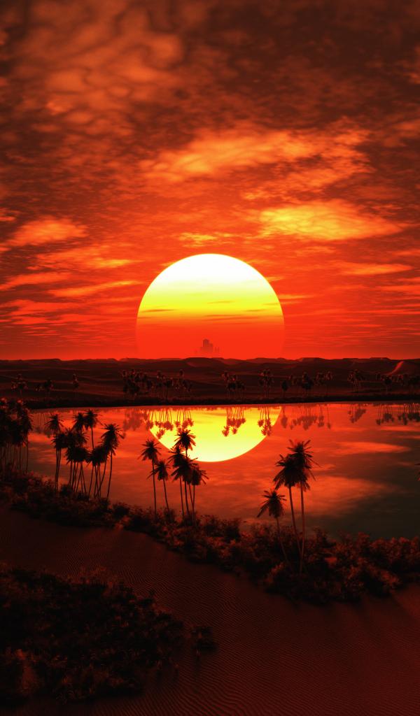 Обои Закат большого солнца над пустыней в тропиках