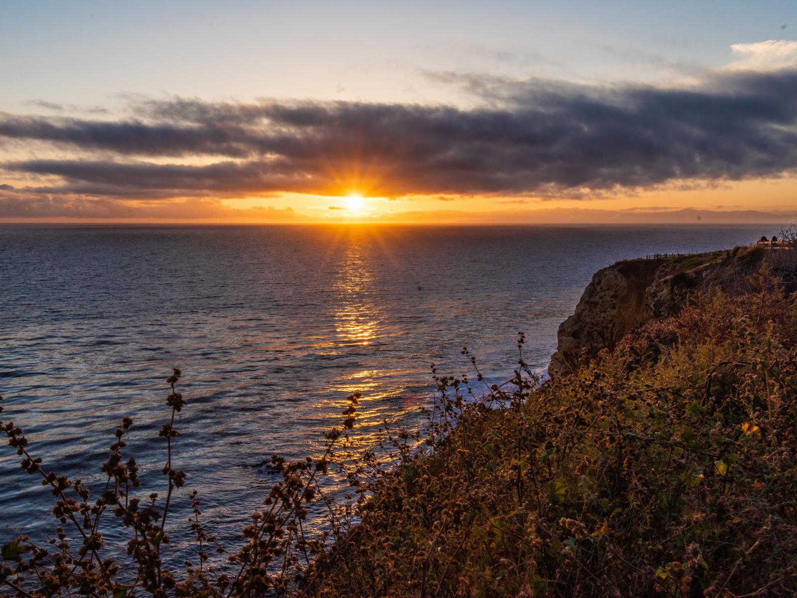 Обои Вид на закат солнца в темных облаках в небе над морем
