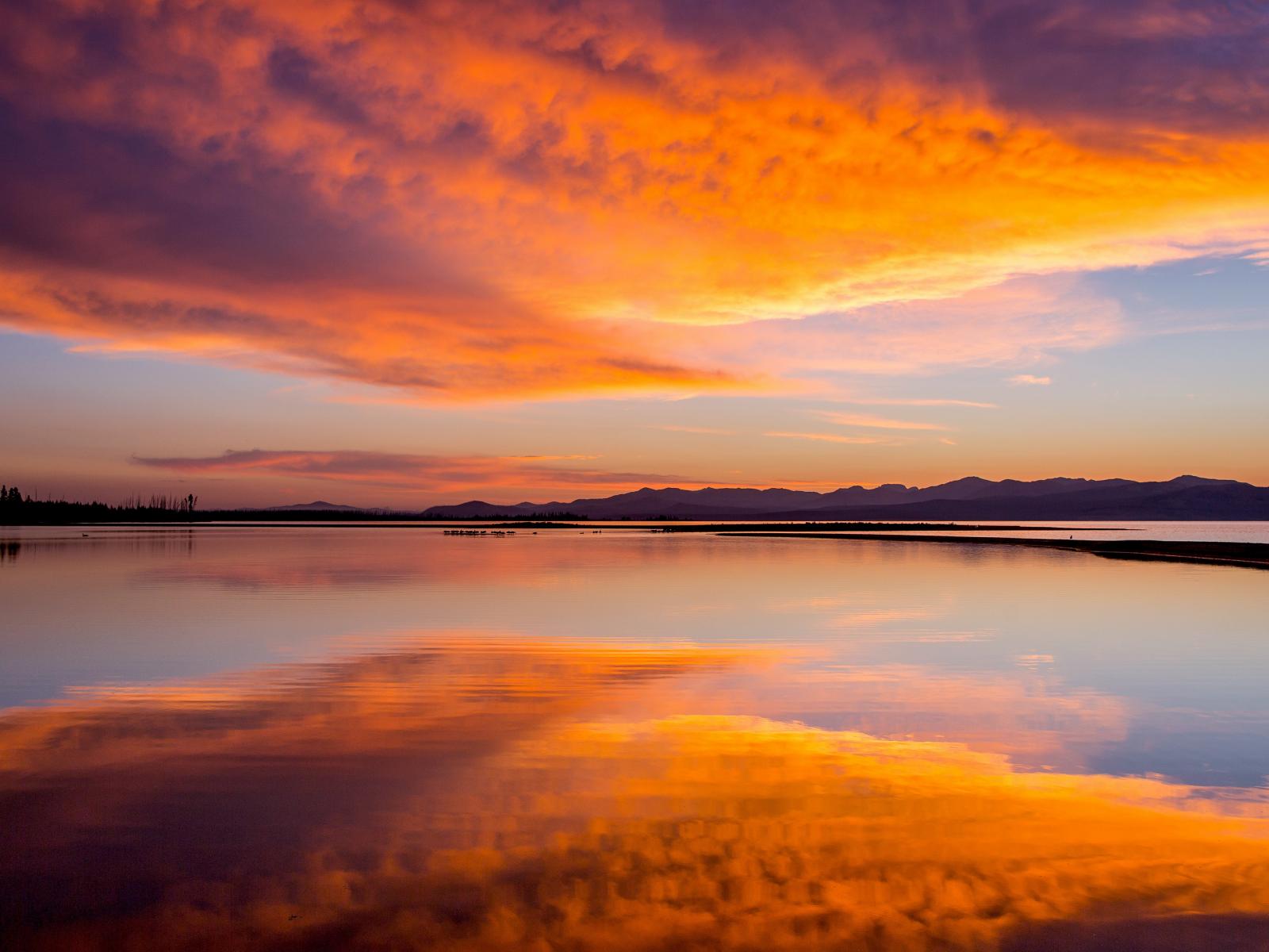 Обои Красивое небо на закате отражается в спокойной воде озера