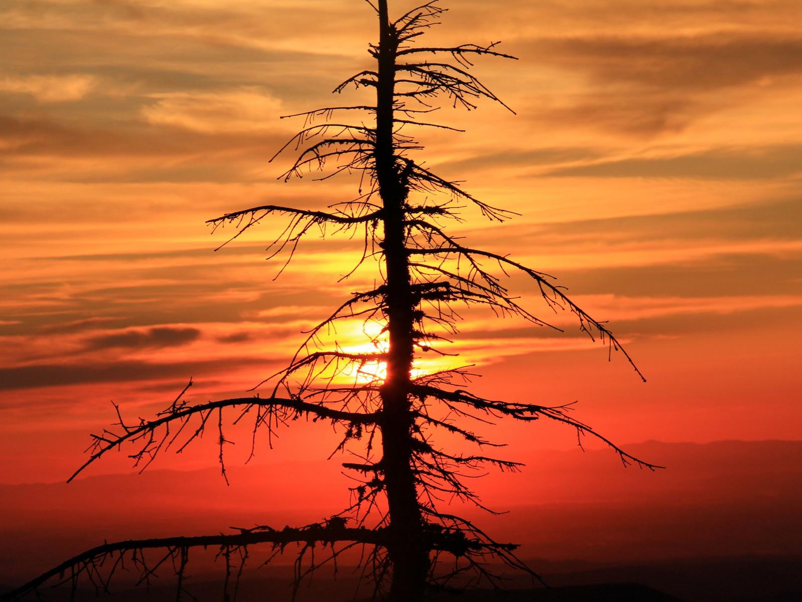Обои Сухое дерево ели на закате солнца