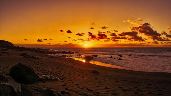 Обои Красивый яркий закат солнца в небе над морем