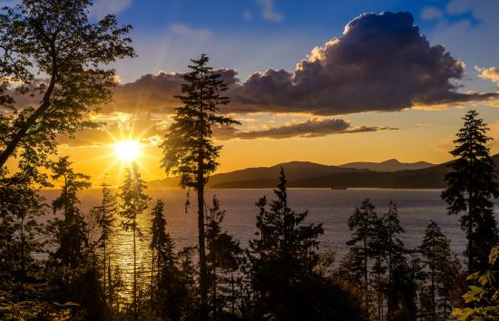 Обои Закат солнца над озером в небе с облаками