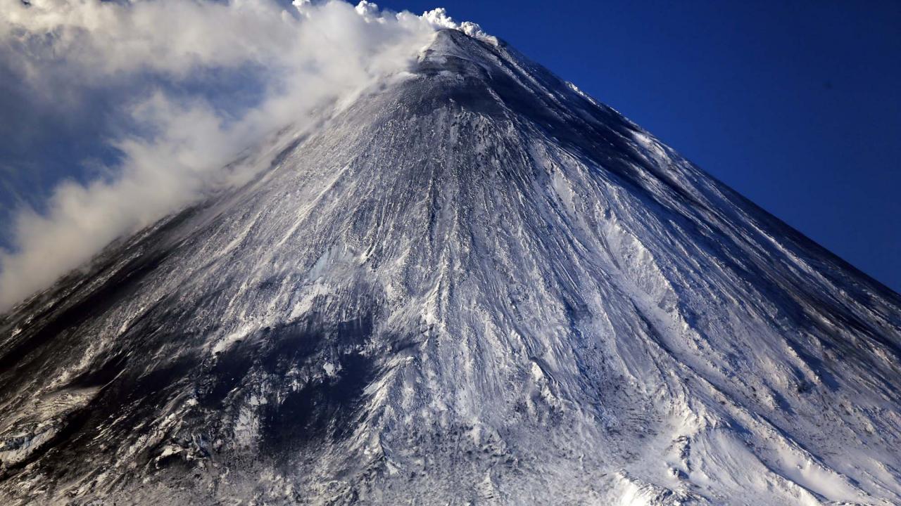 Обои Белый дым выходит из вулкана Ключевская сопка