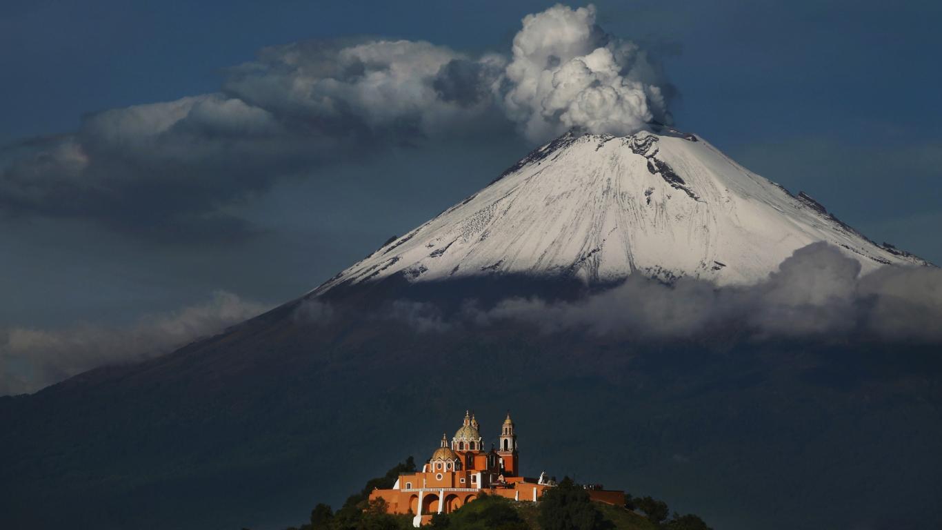 Обои Дымящаяся вершина вулкана Попокатепетль в лучах солнца