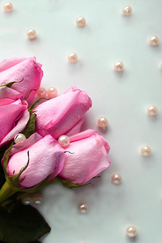 Обои Букет розовых роз с бусинами