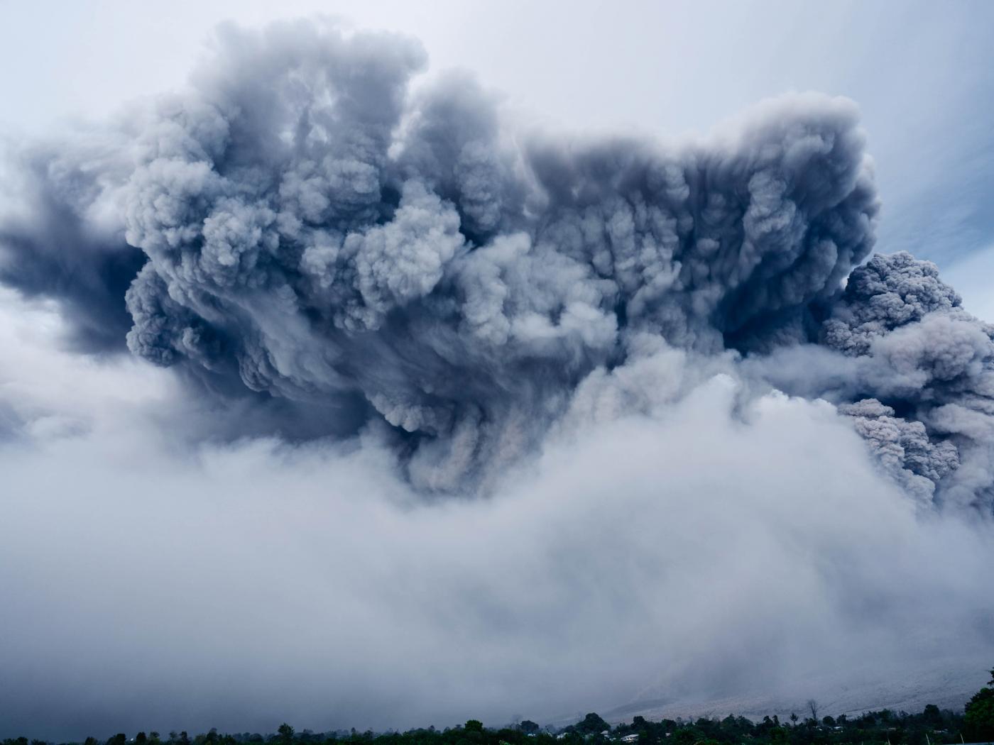 Обои Оранжевое облако над вулканом Кальбуко, Чили