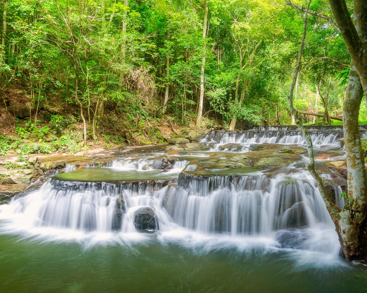 Обои Быстрый лесной водопад бежит по мокрым камням