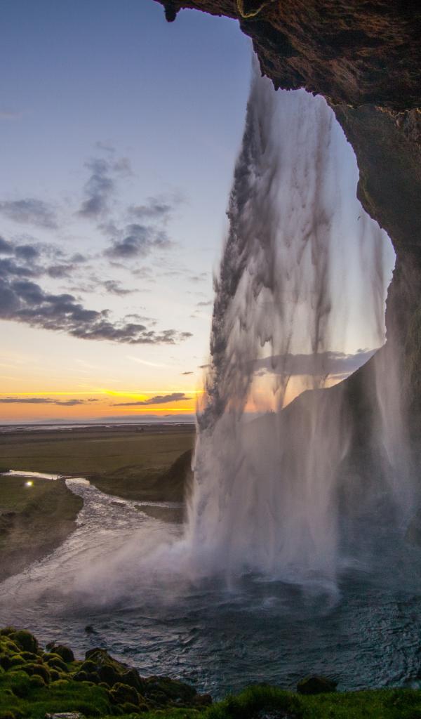 Обои Красивый водопад Сельяландсфосс на закате, Исландия