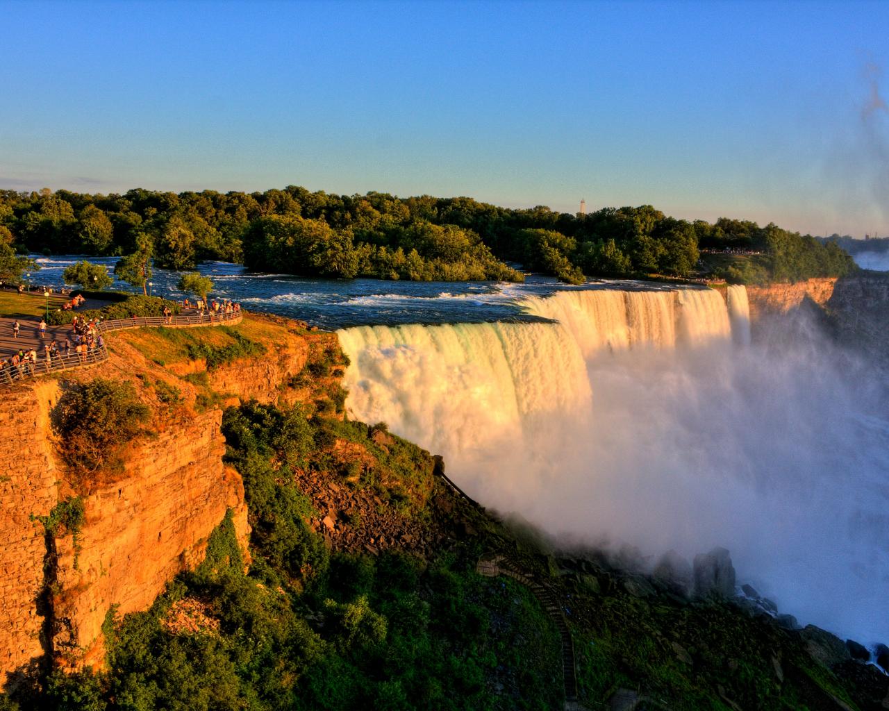 Обои Красивый быстрый Ниагарский водопад в лучах солнца