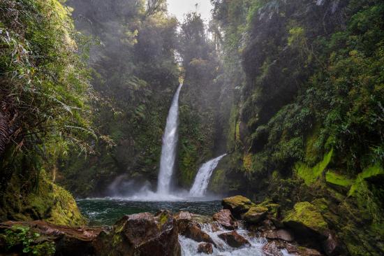 Обои Водопад стекает со скалы в горную реку