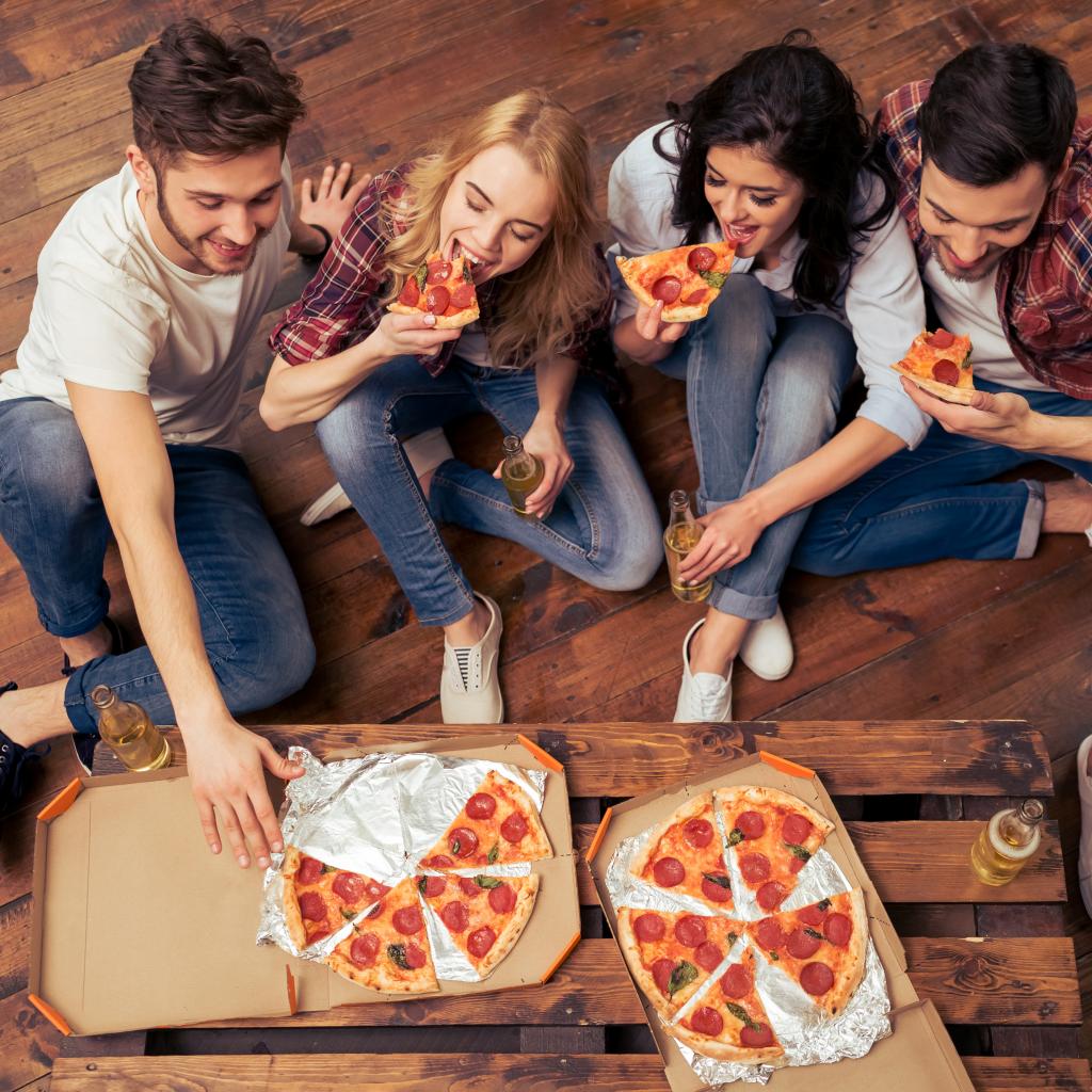Обои Компания друзей ест аппетитную пиццу