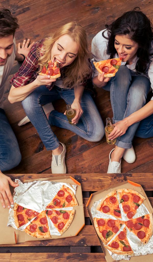 Обои Компания друзей ест аппетитную пиццу