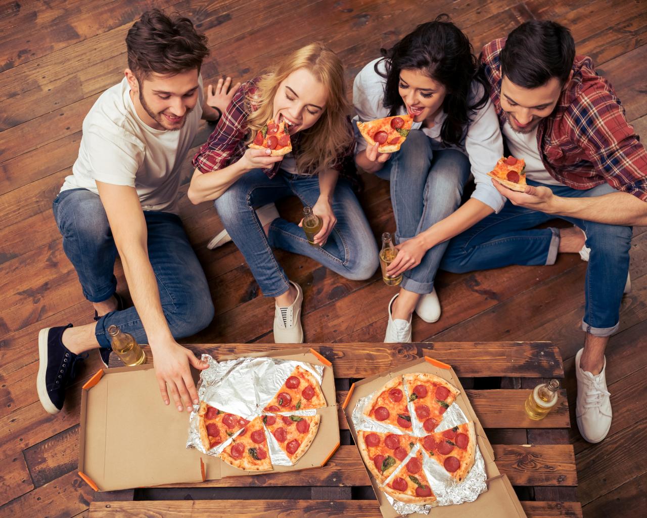 Обои Компания друзей ест аппетитную пиццу