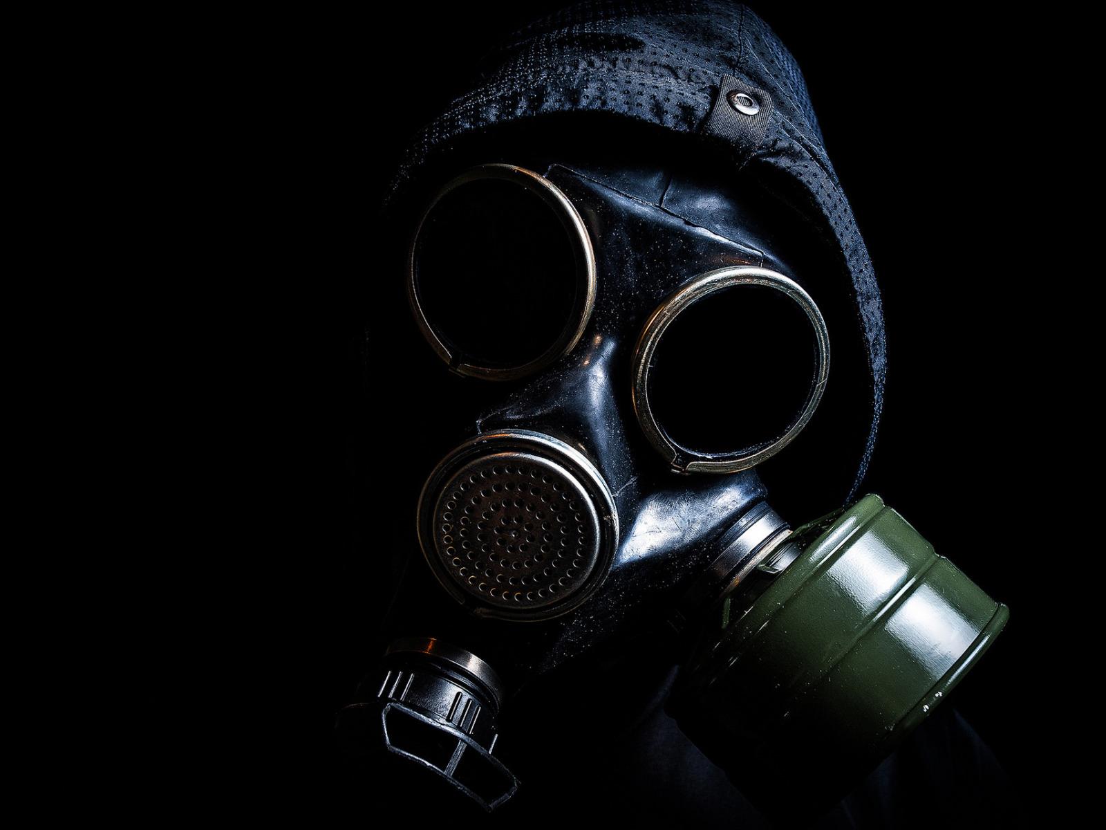 Обои Парень в противогазе на черном фоне, пандемия коронавирус