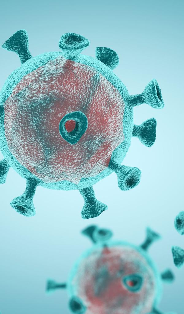 Обои Бактерии коронавирус Covid-19 на голубом фоне